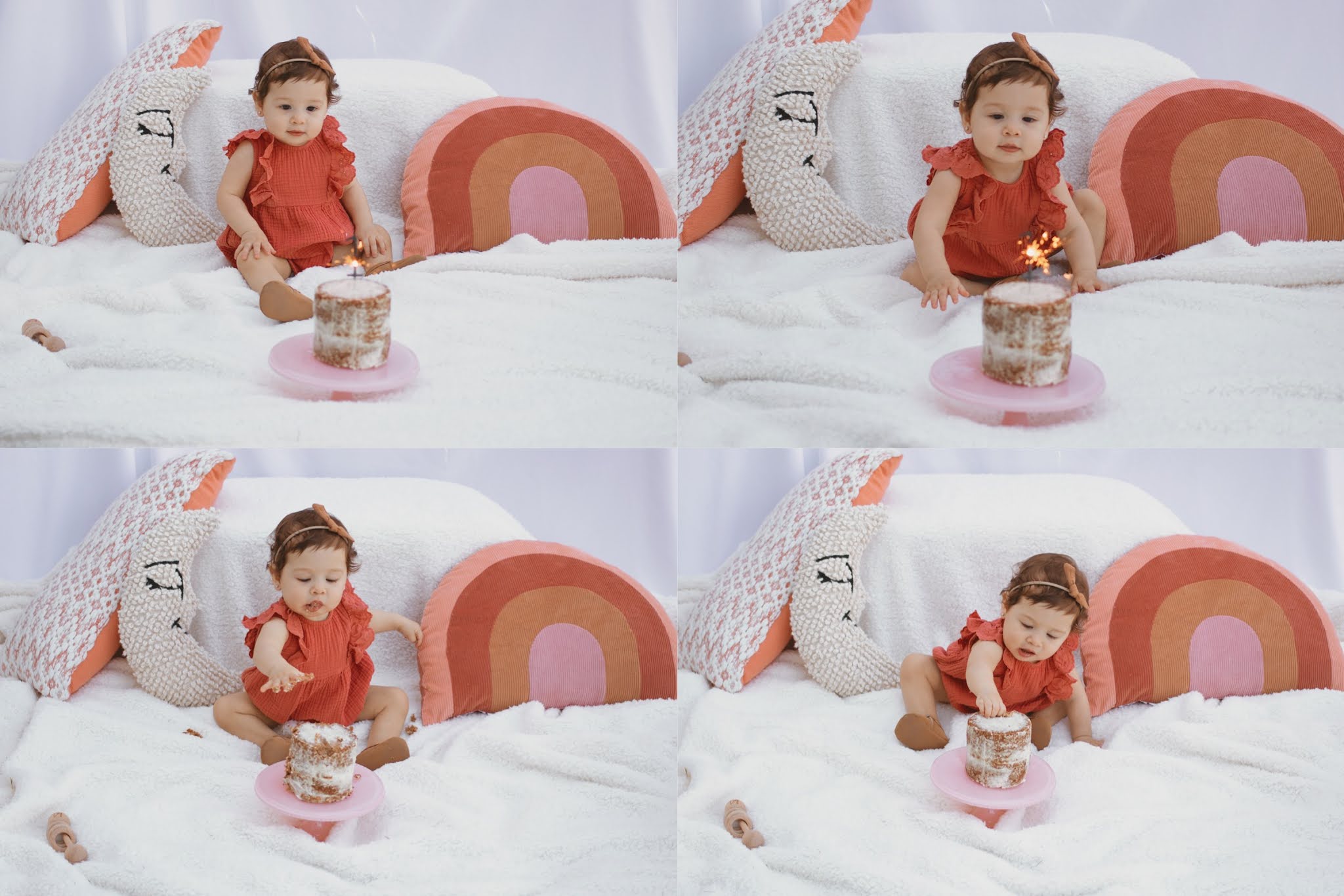 To say I am obsessed with every single photo is an understatement. They turned out better than I could have imagined. I wanted to do two types of photos. I fell in love with the park we had our family photos taken that we went back to get some photos of Lucy taken with her pink tutu and her 1 birthday hat. It's hard to say what photos are my favorite but I think these sets of photos win by a hair. In the second set of photos, I wanted to capture Lucy going crazy over her very first smash cake. I always hear that babies either love or don't want anything to do with their smash cakes. I just knew Lucy was going to go wild with hers, and I was correct. This was the first time Lucy had cake let alone anything "sweet", even though everything was substituted with healthier baby-friendly ingredients. Now I'm even more excited to see her with her smash cake on the day of her party.